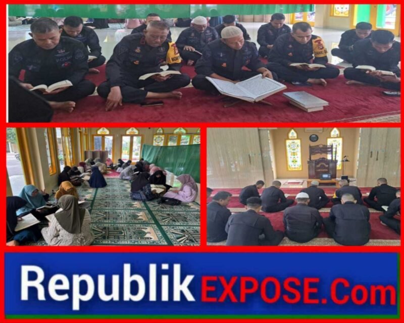 RepuikeXpose.com =JAKARTA – Suasana Jumat pagi di Masjid Al-Amin Batalyon D Pelopor Satbrimob Polda Metro Jaya terasa hangat saat personel Brimob bersama Bhayangkari mengikuti kegiatan tadarus Al-Qur’an, Jumat (27/2/2026). Kegiatan ini menjadi momen pembinaan mental dan spiritual yang melibatkan seluruh anggota, sekaligus mempererat kebersamaan antarpersonel.