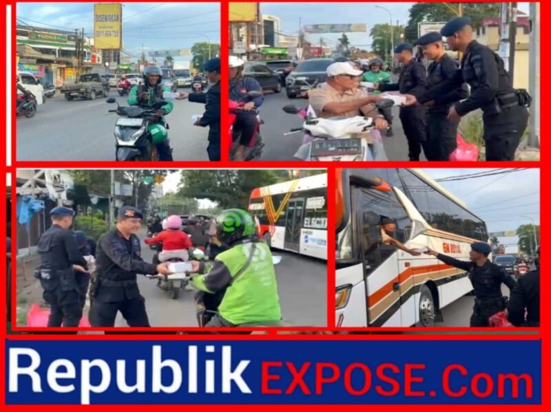 TANGERANG SELATAN – Menjelang waktu berbuka puasa, personel Batalyon C Pelopor Satuan Brimob Polda Metro Jaya menggelar kegiatan pembagian takjil kepada masyarakat dan pengguna jalan di kawasan Jalan RE Martadinata, Ciputat, Sabtu (28/2/2026). Kegiatan yang dimulai sekitar pukul 17.25 WIB itu berlangsung tertib dan mendapat respons positif dari warga sekitar.
