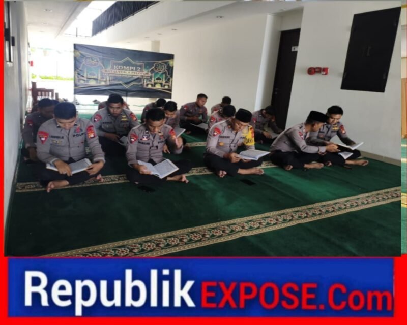 JAKARTA — Personel Kompi 2 Batalyon A Pelopor Satbrimob Polda Metro Jaya yang tergabung dalam Siap 1 menggelar tadarus Al-Qur’an melalui Zoom Meeting di Lantai 1 Asrama Batalyon A Pelopor, Rabu (4/3/2026). Agenda tersebut menjadi bagian dari pembinaan rohani selama Ramadan 1447 H dengan pembacaan Juz 14, mulai Surah Al-Hijr ayat 1 hingga Surah An-Nahl ayat 128. Kegiatan ini konsisten dilaksanakan sebagai upaya memperkuat mental dan integritas anggota di tengah kesiapsiagaan operasional.