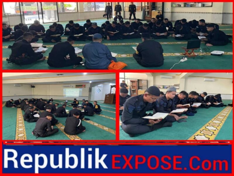JAKARTA – SatBrimob Polda Metro Jaya melaksanakan tadarus Al-Qur’an di Masjid At-Taubah, Jumat (13/3/2026). Kegiatan ini menjadi bagian dari program Pembinaan Rohani dan Mental (Binrohtal) PNPP Polda Metro Jaya selama bulan suci Ramadan.