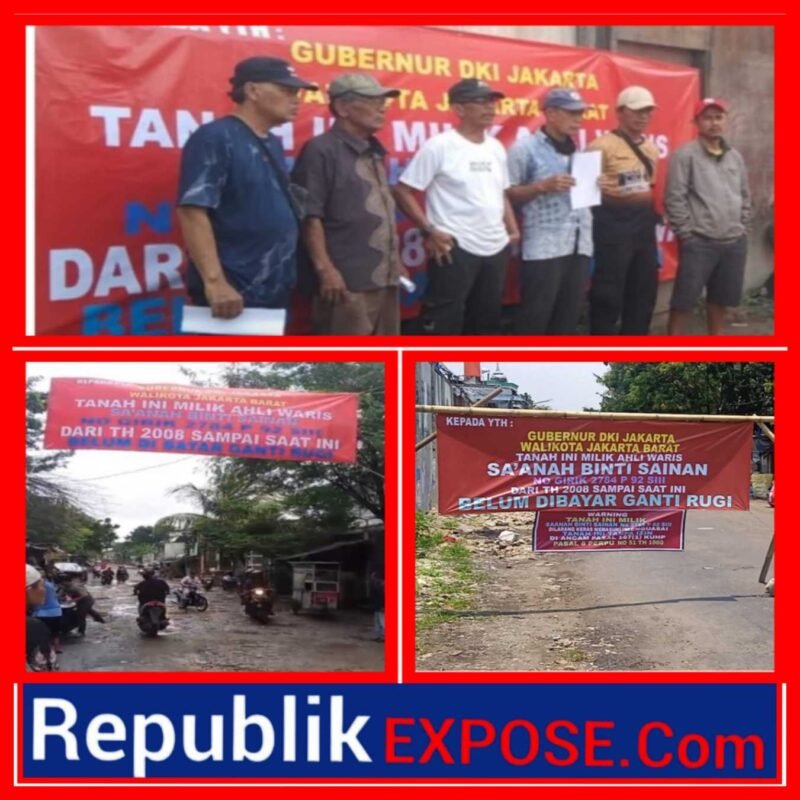 Hingga berita ini ditulis lokasi masih dipasang spanduk bertuliskan ” KEPADA YTH : GUBERNUR DKI JAKARTA, WALIKOTA JAKARTA BARAT TANAH INI MILIK AHLI WARIS SAANAH BINTI SAINAN, NO GIRIK 2784 P 92 SIII, DARI TAHUN 2008 SAMPAI SAAT INI BELUM DIBAYAR GANTI RUGI ” Demikian Isi tulisan yang tertulis.