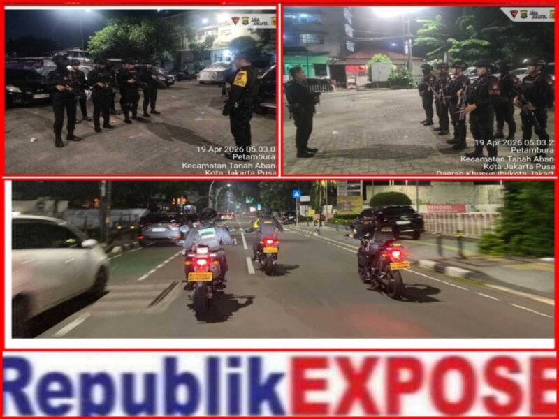 RepublikeXpose.com // JAKARTA – Batalyon A Pelopor Satuan Brimob Polda Metro Jaya melaksanakan patroli di kawasan Tanah Abang, Jakarta Pusat, dalam rangka mengantisipasi potensi gangguan kamtibmas dan tawuran warga, Minggu (19/4/2026) malam. Kegiatan ini difokuskan pada pemantauan titik-titik rawan serta memastikan situasi di lingkungan permukiman tetap aman dan terkendali.