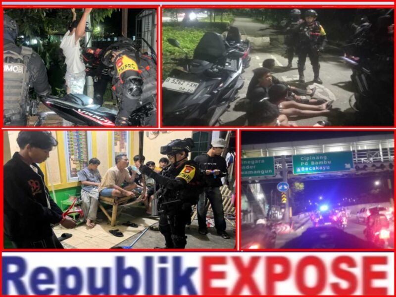 RepublikeXpose.com // JAKARTA – Patroli malam hingga dini hari yang digelar Brimob Polda Metro Jaya bersama jajaran Polres Metro Jakarta Timur berhasil menggagalkan rencana tawuran yang diduga akan berlangsung usai waktu subuh, Sabtu (25/4/2026). Dalam patroli tersebut, petugas mengamankan sejumlah pemuda berikut barang bukti senjata tajam jenis celurit sepanjang dua meter, telepon genggam, serta satu unit sepeda motor.