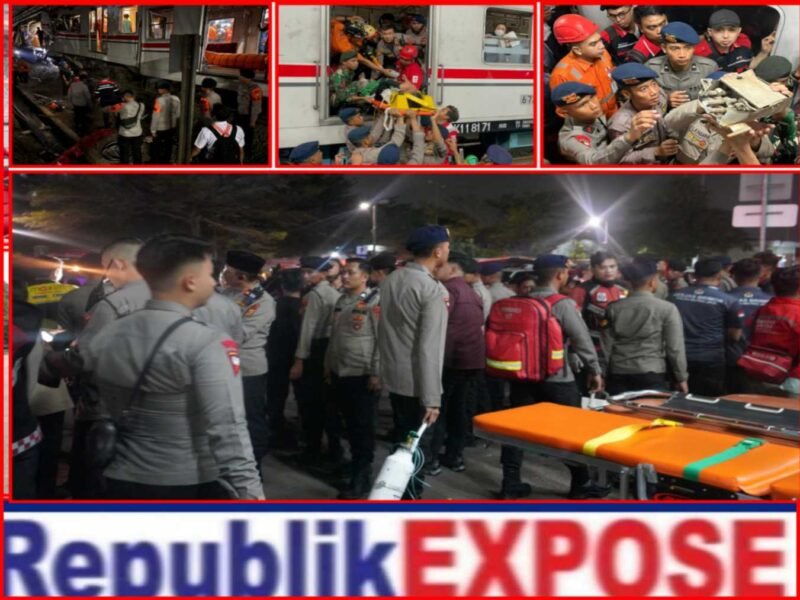 RepublikeXpose.com // BEKASI – Kecelakaan kereta api melibatkan KRL Commuter Line tujuan Bekasi dengan KA Argo Bromo Anggrek terjadi di kawasan Stasiun Bekasi Timur, Kota Bekasi, Senin (27/4/2026) malam. Insiden tersebut langsung memicu kepanikan di lokasi dan membuat perjalanan kereta api di jalur tersebut terganggu.